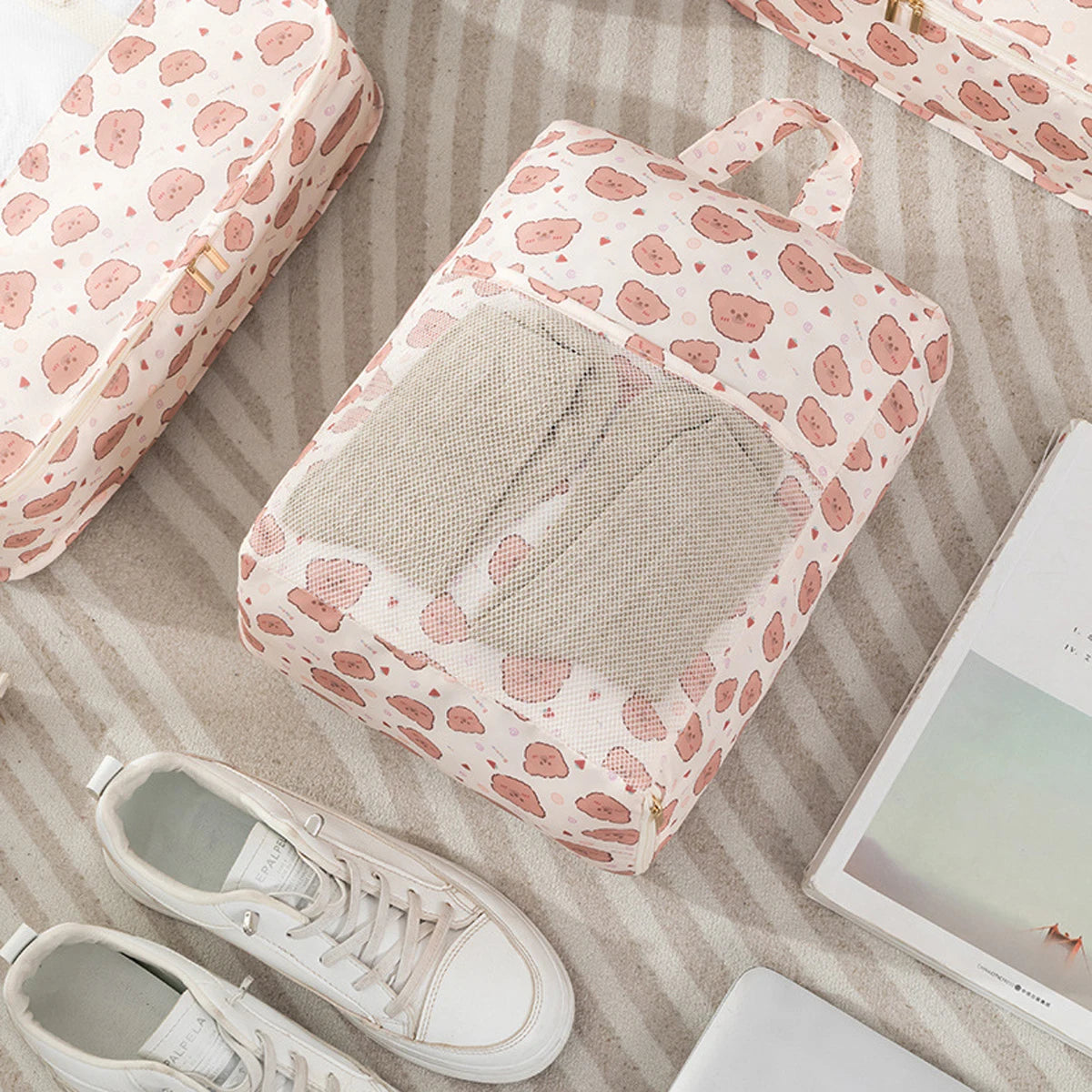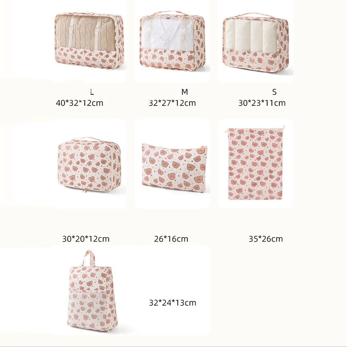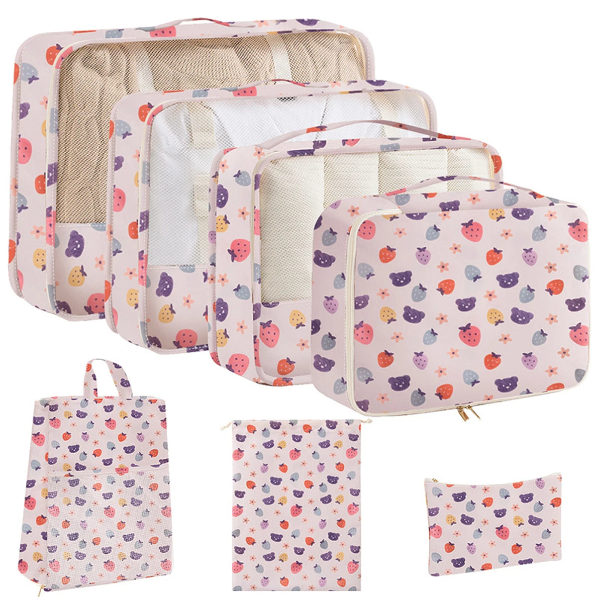 7PCS Travel Packing Cube Printed Cartoon Travel Storage Bag Clothes Shoes Toiletries Sorting Storage Bag for Luggage Suitcase