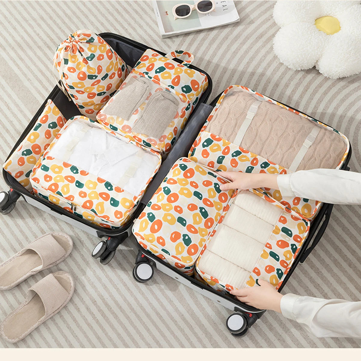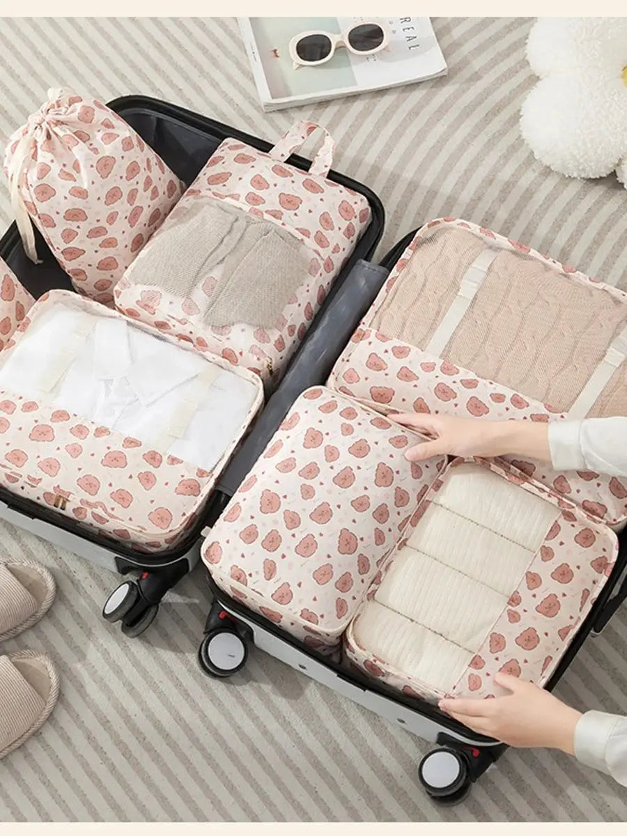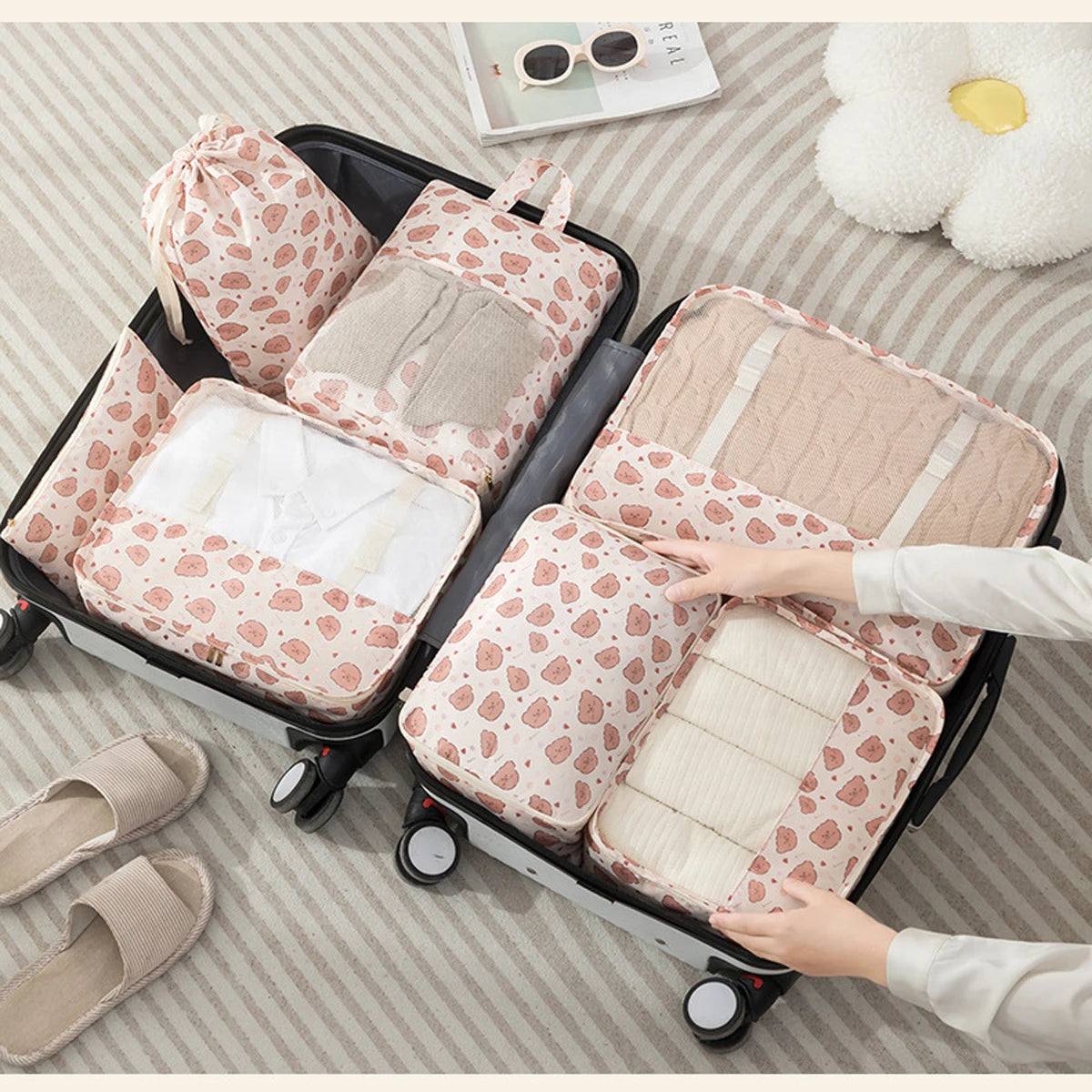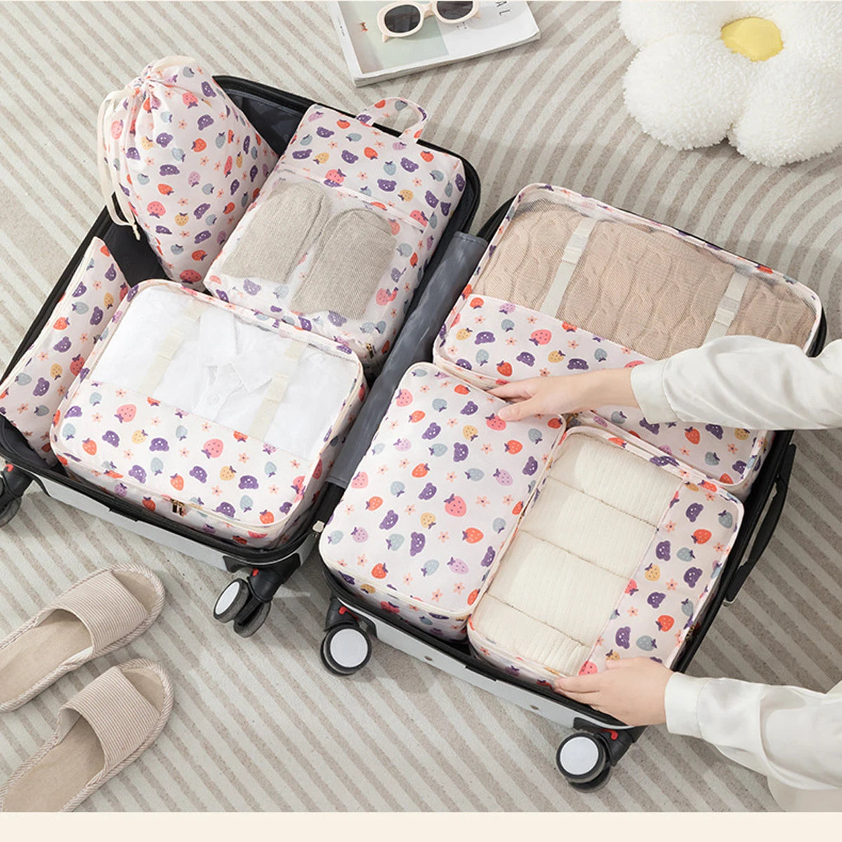 7PCS Travel Packing Cube Printed Cartoon Travel Storage Bag Clothes Shoes Toiletries Sorting Storage Bag for Luggage Suitcase