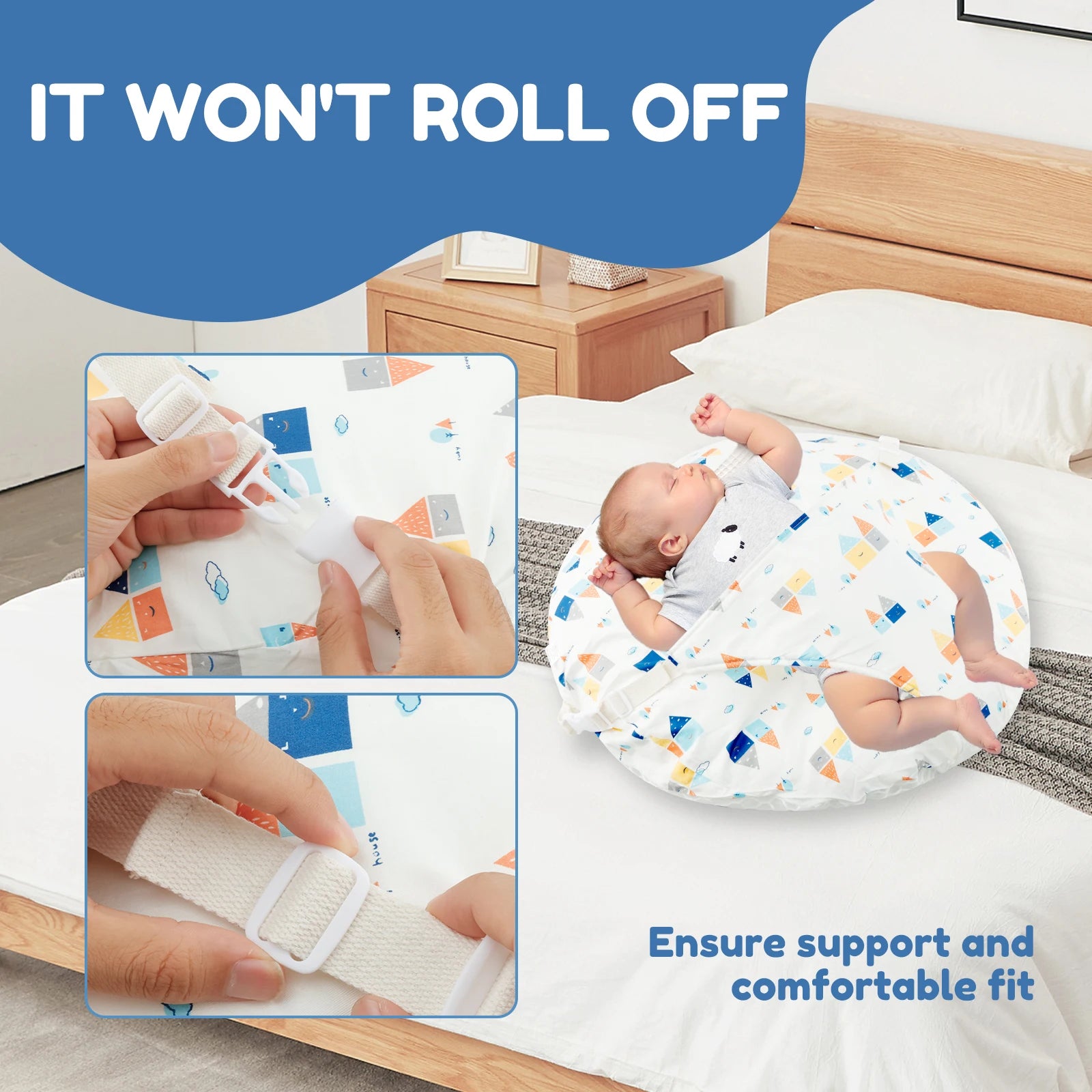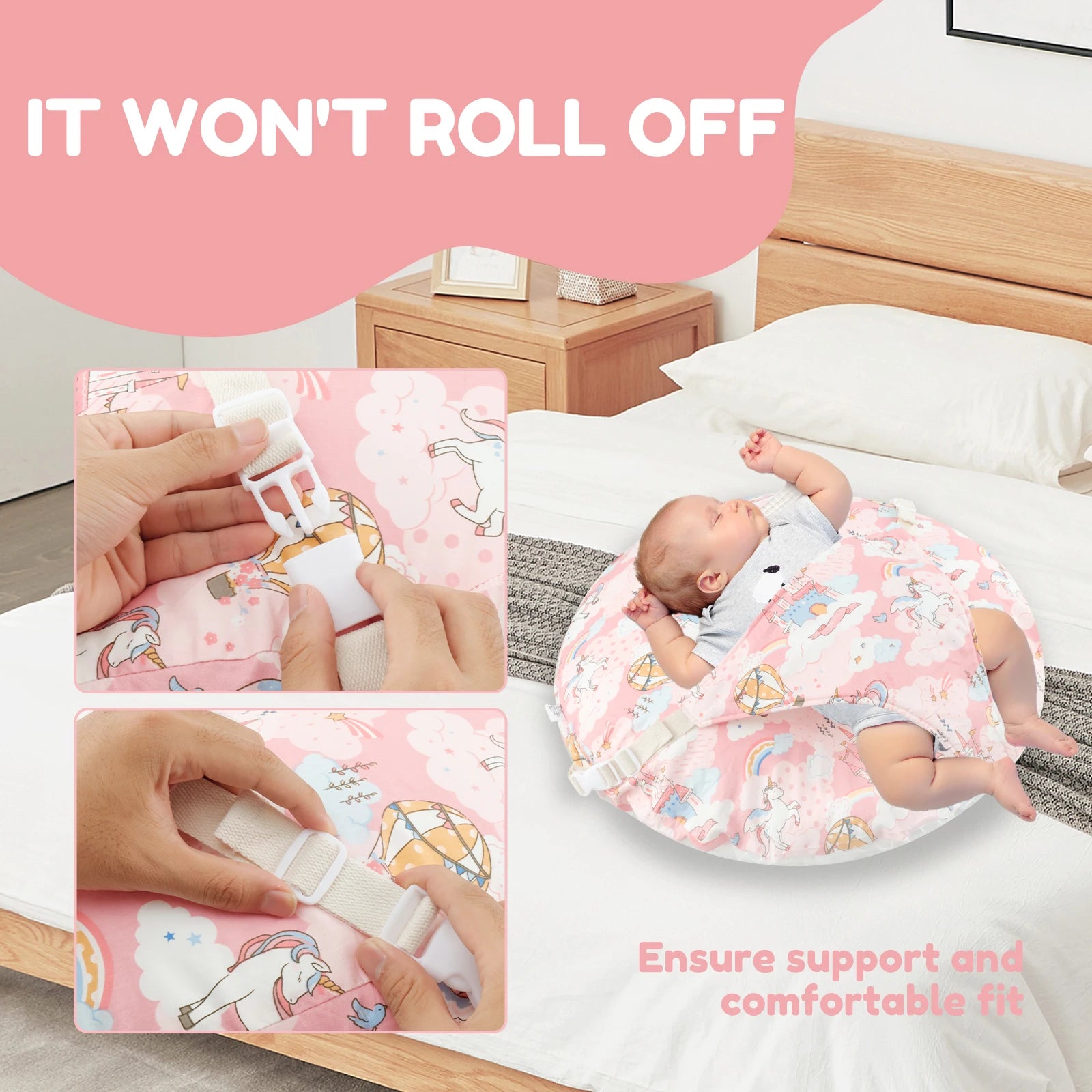 Adjustable Belt: This newborn lounger pillow is specially equipped with an adjustable buckle that securely cradles the baby's body, ensuring a supportive and comfortable fit while holding the baby in place and preventing it from rolling off