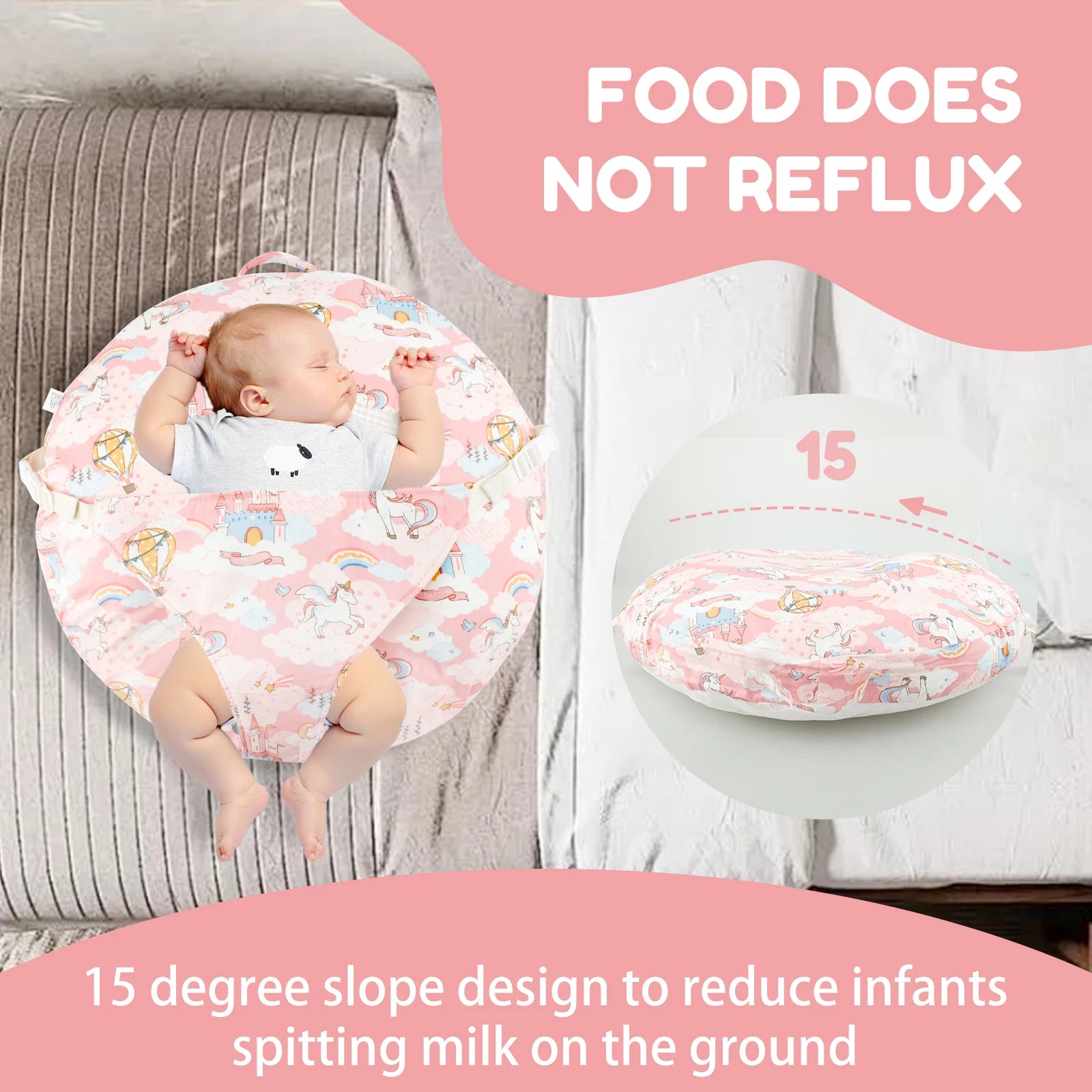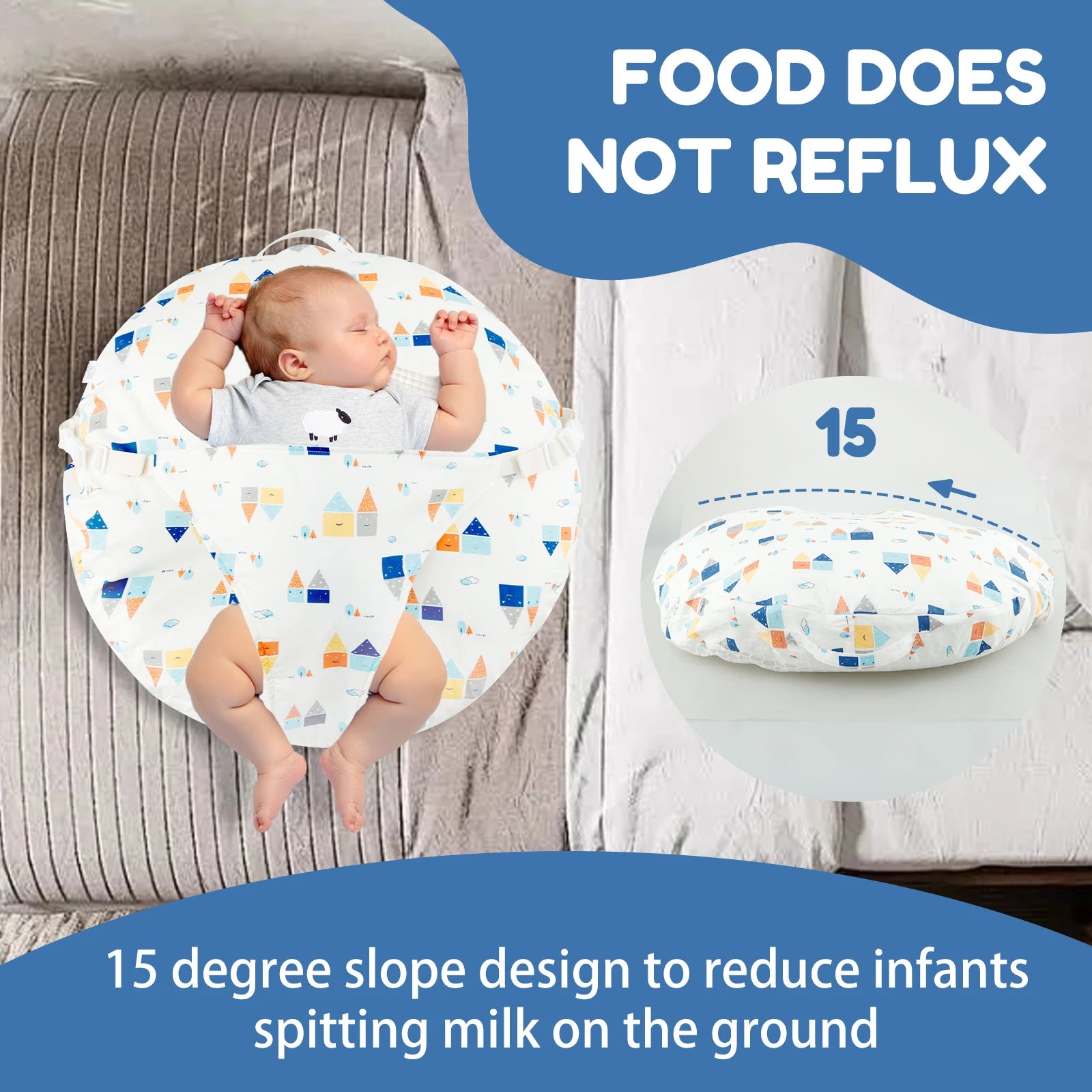 15 Degrees Slope Design: This baby lounge pillow adopts a specially designed 15 degrees slope, which helps to prevent food reflux and reduce babies spitting up