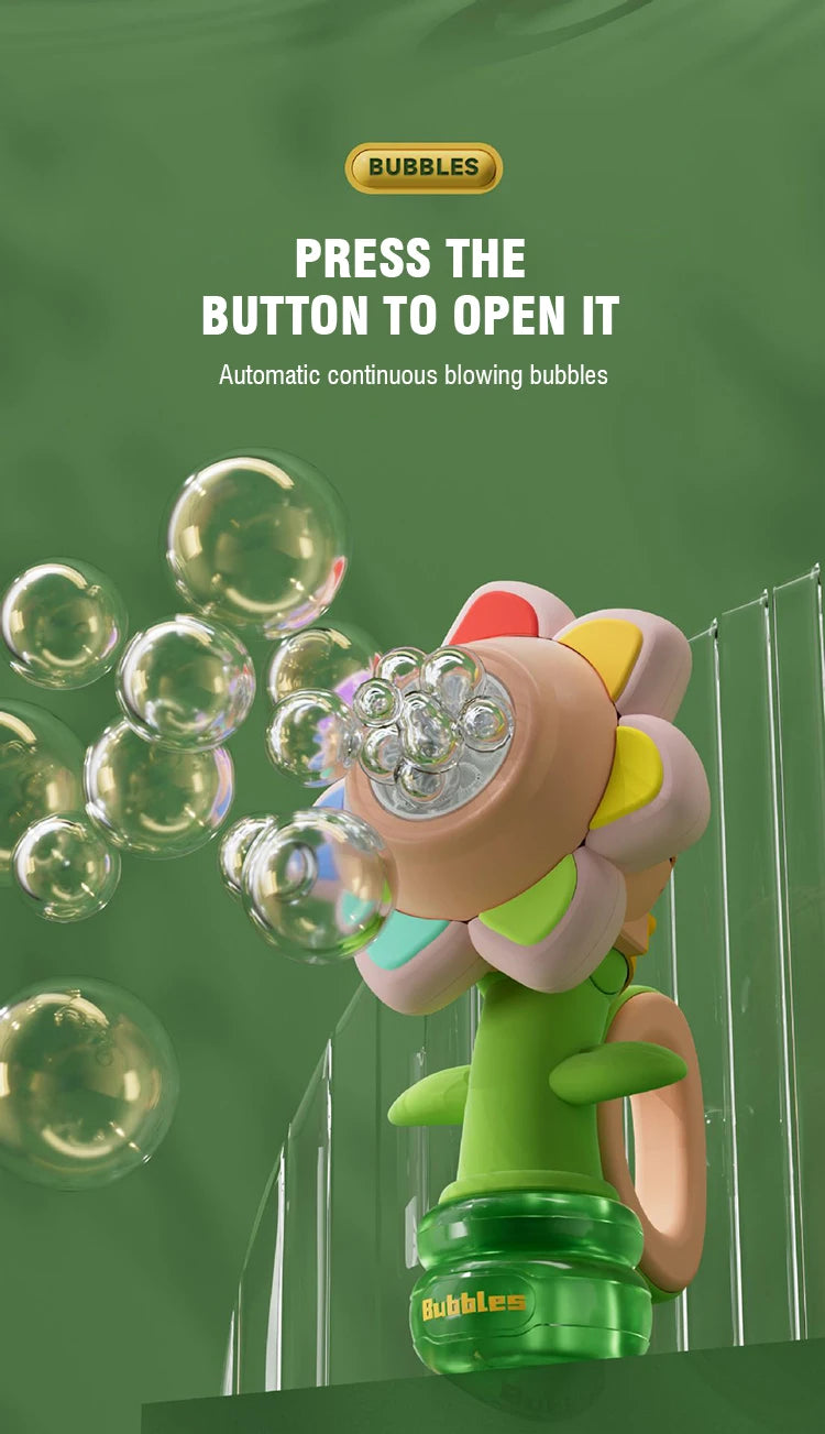 Transformujte letné aktivity pomocou tohto inovatívneho automatického bublinového zariadenia v tvare tancujúcej slnečnice. Produkuje vyše 20 000 pestrých bublín za minútu, čím vytvára magickú atmosféru na každom podujatí! Vybavené praktickým nabíjacím systémom a vodoodolnou konštrukciou, zabezpečuje neprerušovanú zábavu pre celú rodinu. Tento bublinový stroj kombinuje estetický dizajn slnečnice s pokročilou technológiou tvorby bublín. Integrovaná nabíjateľná batéria poskytuje dlhú výdrž, ideálnu pre vonkajšie párty, detské oslavy alebo záhradné posedenia. Jednoduché ovládanie a údržba umožňujú okamžité použitie bez komplikácií. Vďaka svojej odolnosti voči vode je bezpečný aj pri náhodnom postriekaní, čo z neho robí spoľahlivého spoločníka pre letné radovánky.