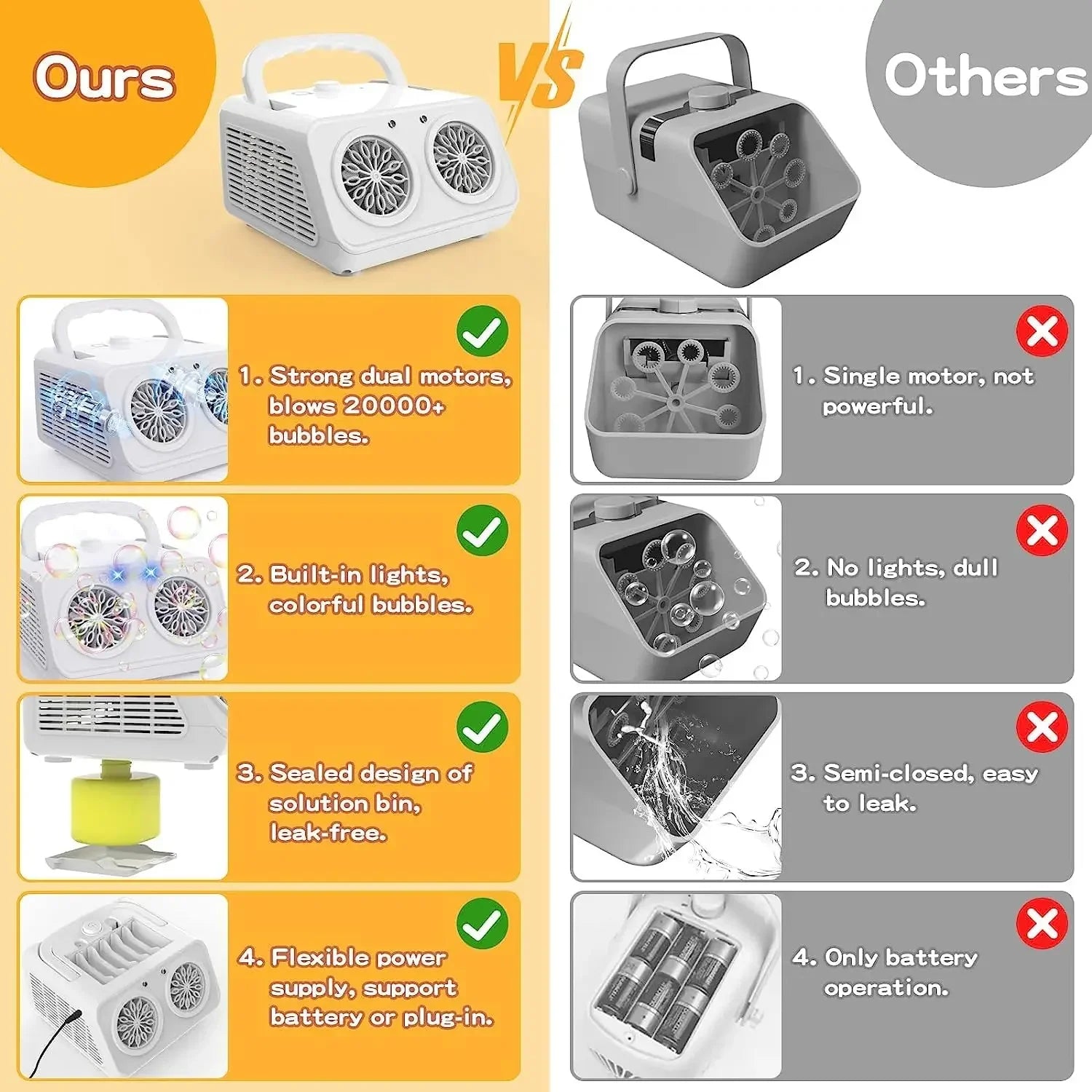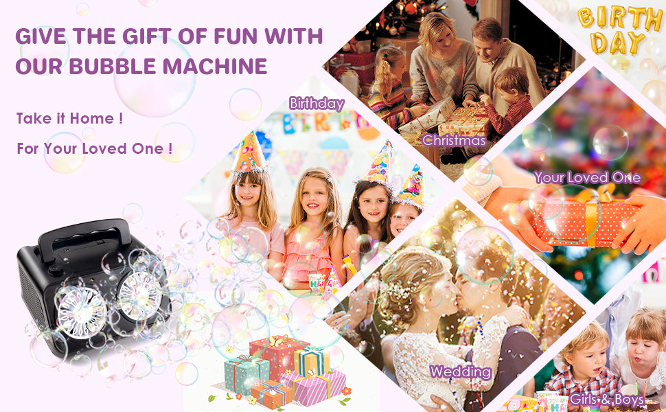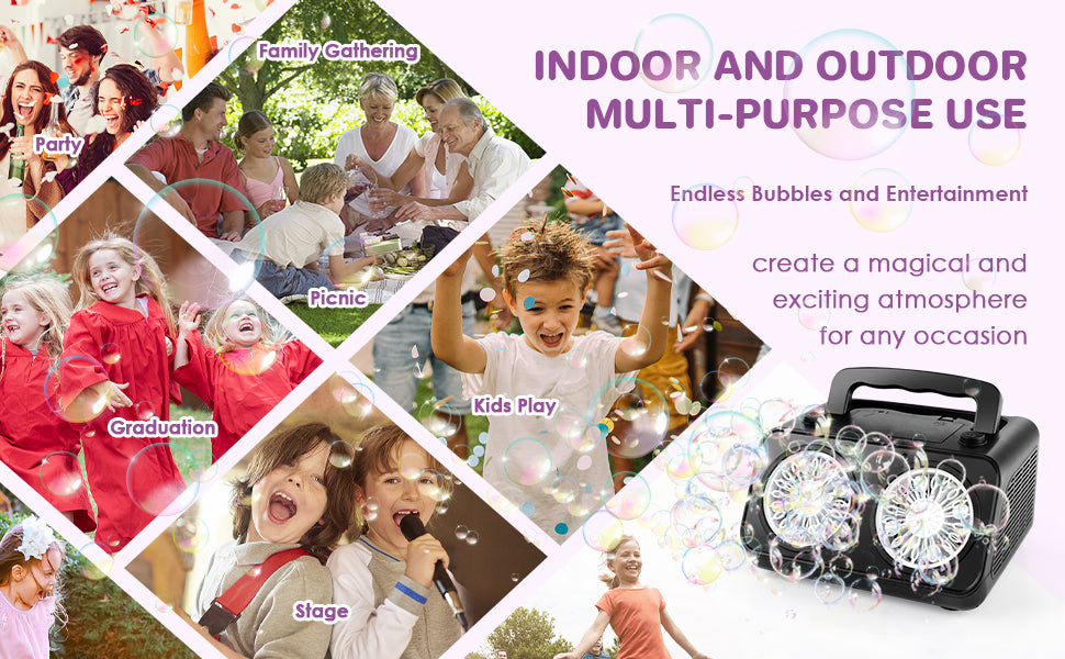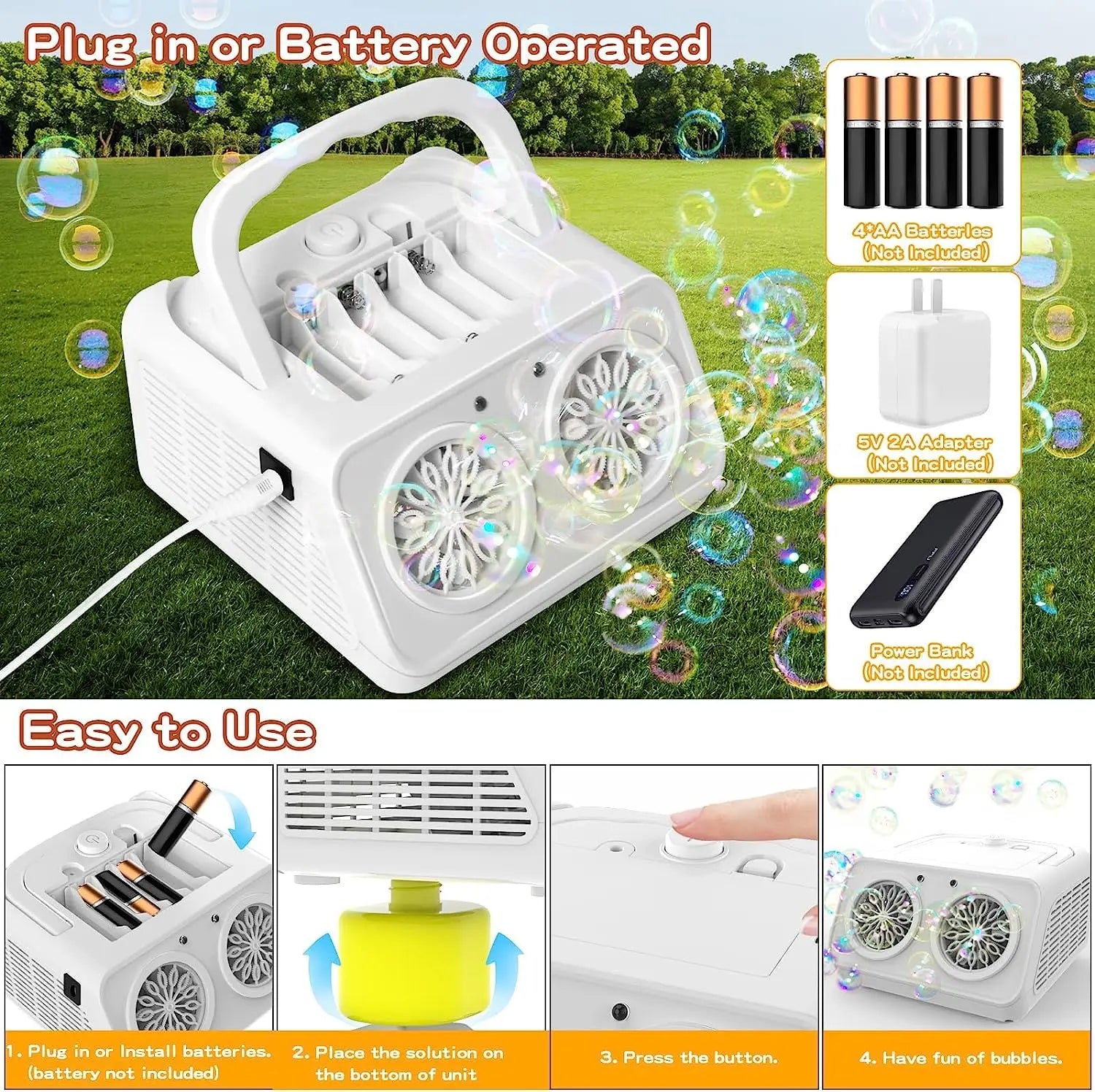 Stroj na výrobu bublín s dvoma úrovňami rýchlosti je ideálnym doplnkom pre každú párty či oslavu. Umožňuje plynulé nastavenie intenzity produkcie bublín podľa potreby, čím vytvára nezabudnuteľnú atmosféru. Kompaktný a ľahko ovládateľný, tento prístroj zabezpečí efektívnu a bezpečnú zábavu pre všetky vekové kategórie, či už v interiéri alebo exteriéri.