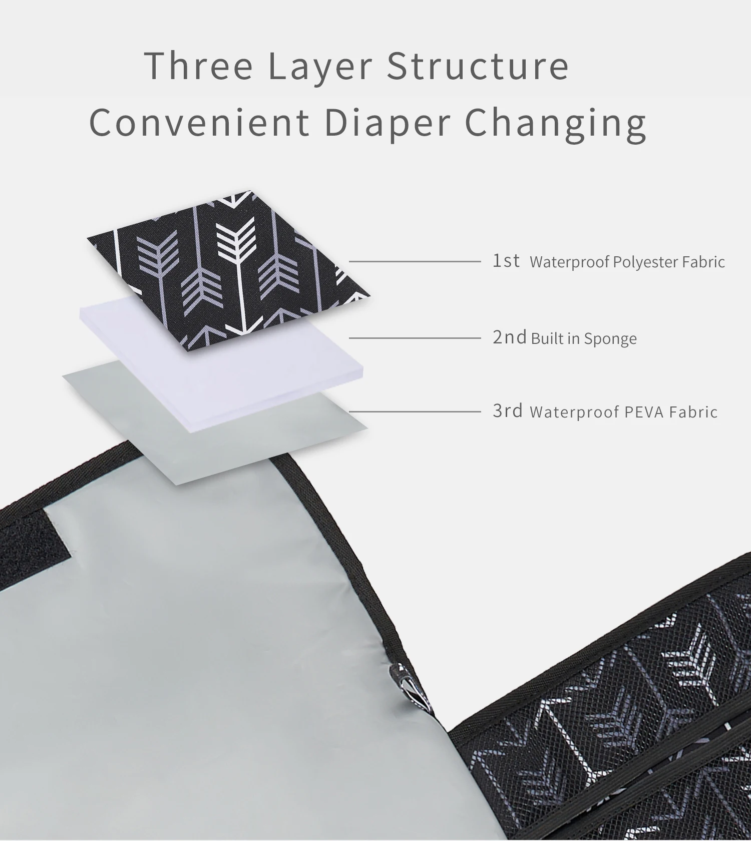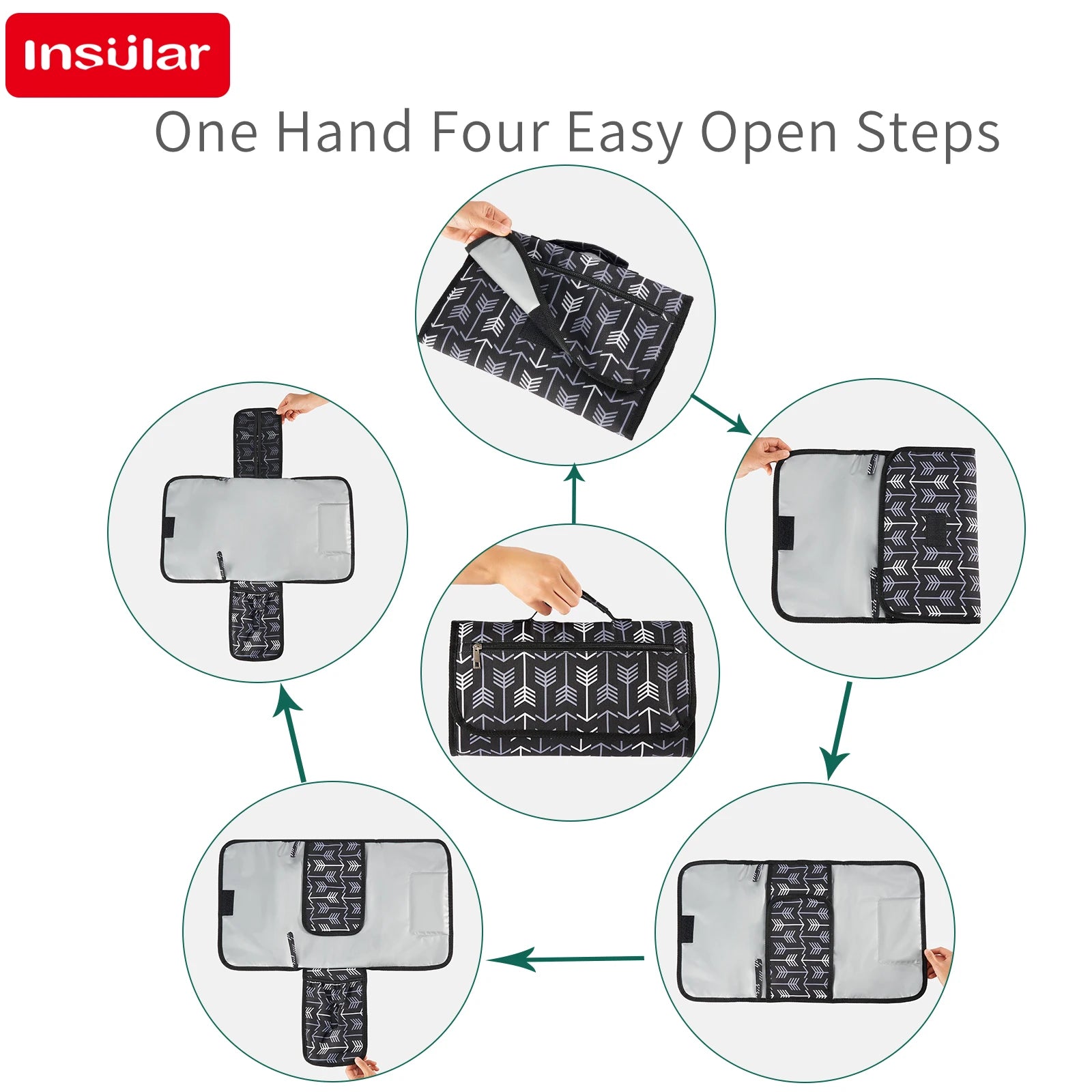 INSULAR Baby Diaper Changing Pad Infant Nappy Cushion Mattress Mat Travel Foldable Washable Waterproof Reusable Outdoor 3 Layers