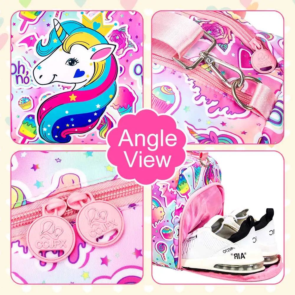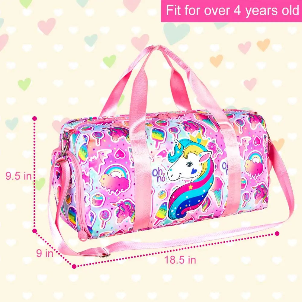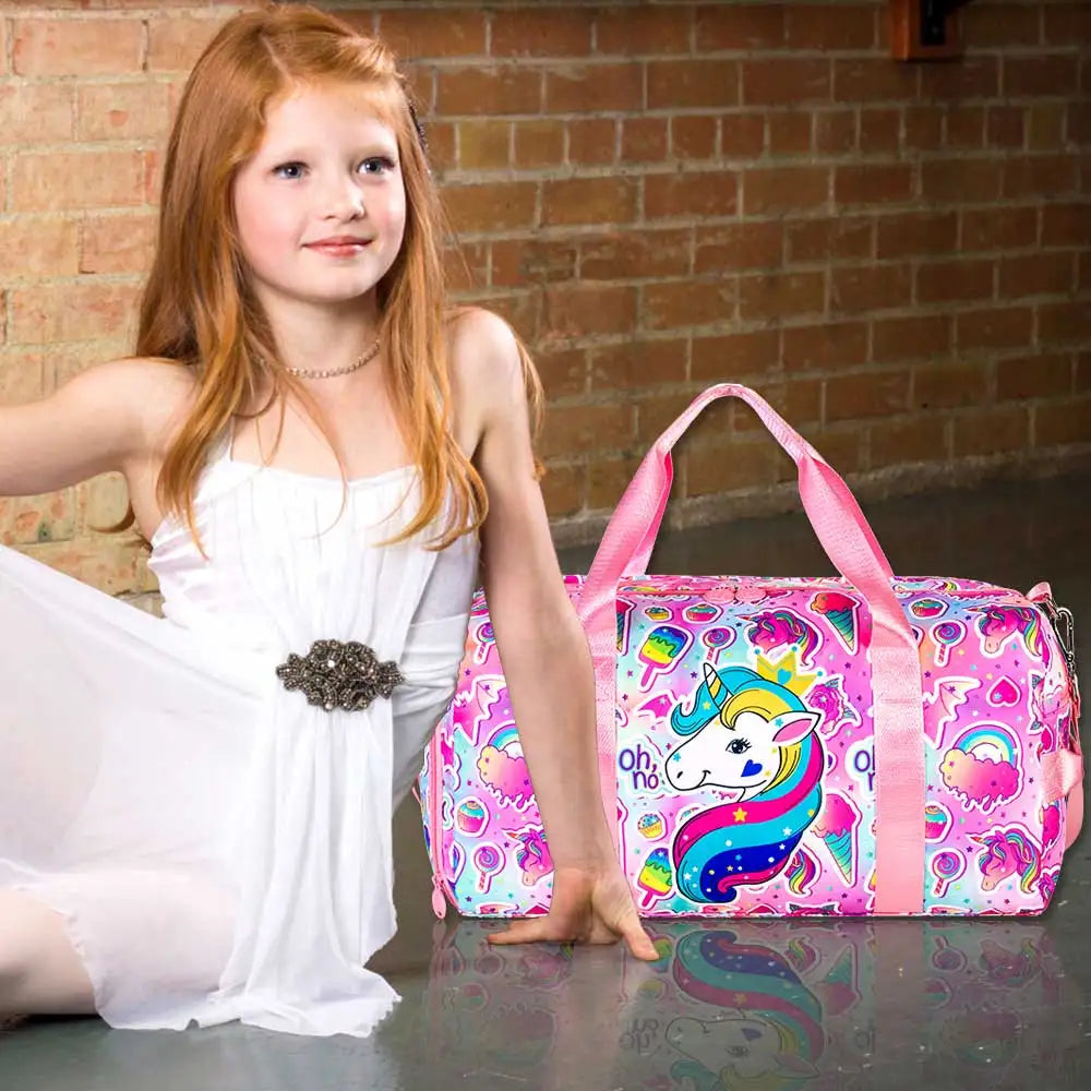 Kids Duffle Bag For Travel With Shoe Compartment Girls Gym Dance Ballet Weekender Overnight Unicorn Rainbow Mermaid Pink Purple