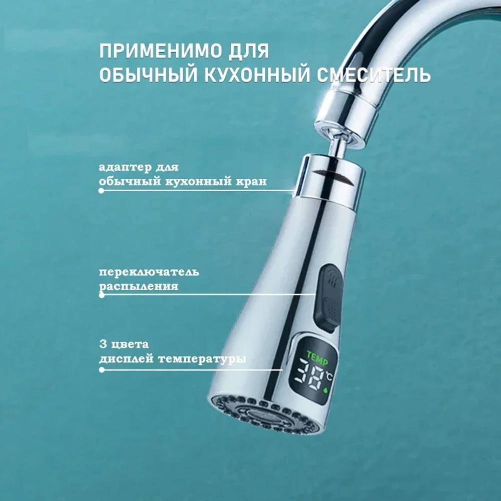 Kitchen Faucet Head LED Faucet Tap Nozzle Replacement Water Saving Reduce Bills Kitchen Swivel Head Digital Pull-out Nozzle